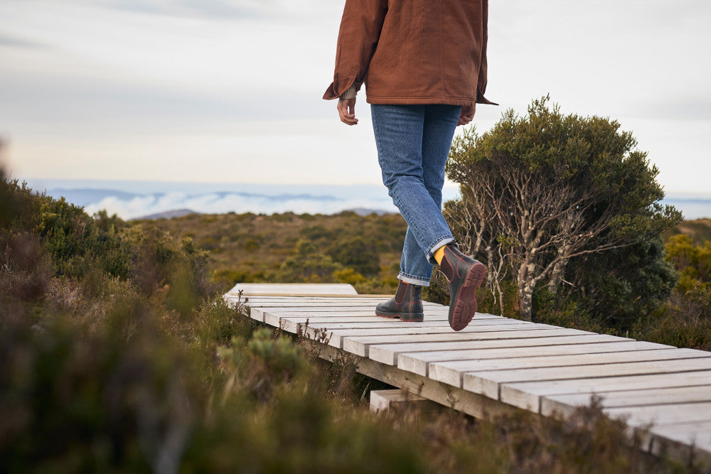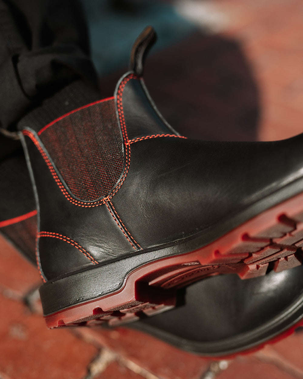 For the habitually adventurous. the sleek black Classic Chelsea #2342. features all the comfort and durability with a contrasting red outsole and stitching.